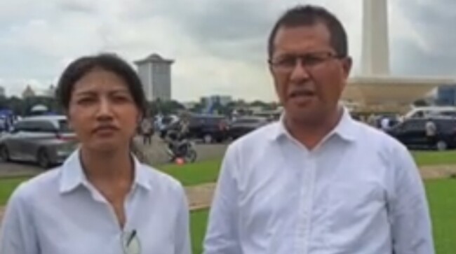 KUPANG _HALUANTIMUR.COM _Memakai kemeja putih Bupati dan Wakil Bupati Kupang terpilih, Yosef Lede dan Aurum Titu Eki , mengikuti Gladi Bersih pelantikan di halaman monas Jakarta, Rabu (19/02/2025).