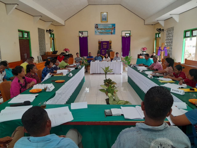 Kupang_Haluantimur.com _Majelis Jemaat Sion Oekule, Klasis Sulamu Gelar Rapat Tahunan Majelis (Ratam) Senin (9/03/2026). Inti rapat tahunan Majelis Jemaat terkait evaluasi dan pembahasan program tahun pelayanan 2026, berlangsung selama dua hari.