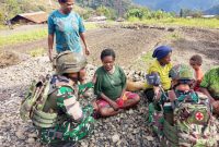 Kupang_Haluantimur.com_Puncak Jaya, Papua Tengah, Suasana kebersamaan terasa begitu kental di Kampung Wuyuneri, Kabupaten Puncak Jaya, saat Prajurit Satgas Pamtas RI-PNG Kewilayahan Yonif 743/PSY Pos…