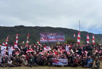 Kupang_Haluantimur.com_Puncak Jaya, Menjelang peringatan Hari Ulang Tahun ke-80 Kemerdekaan Republik Indonesia, semangat merah putih berkibar di Kampung Wuyuneri, Distrik Mulia, Kabupaten Puncak Jaya, Papua….